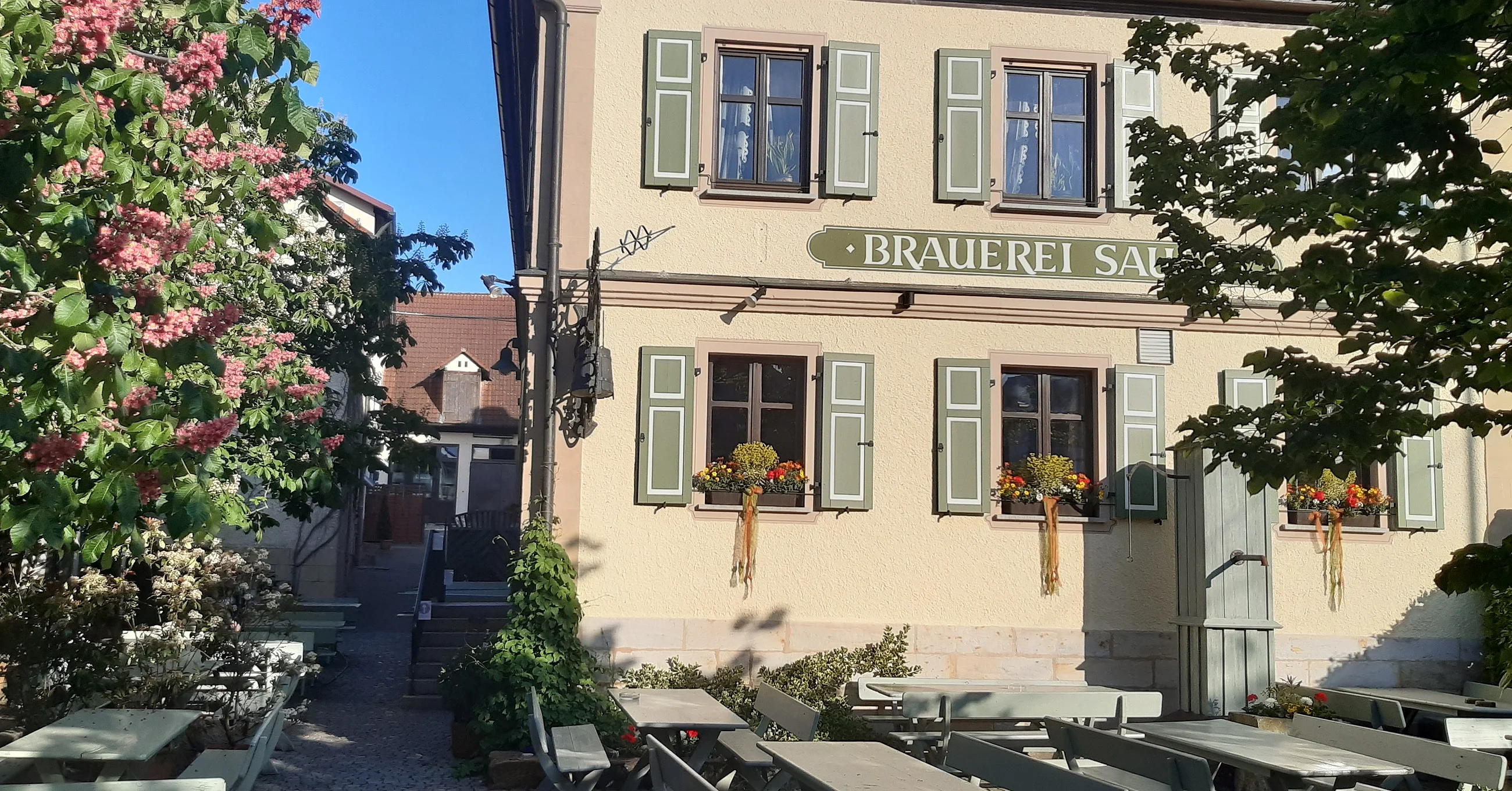 Genießen Sie unsere Spezialitäten in ländlicher, gemütlicher Atmosphäre. Unser selbstgebrautes Bier und unsere Küche wurden von "Der Feinschmecker" als besonders empfehlenswert ausgezeichnet.