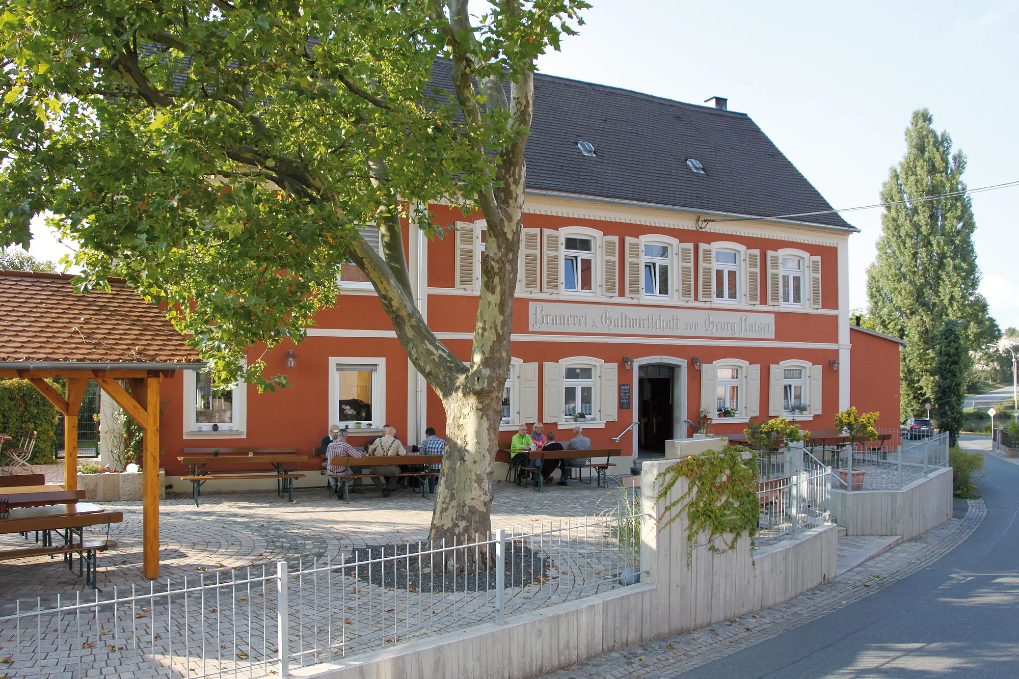 Der Brauereigasthof ist Mittelpunkt des Dorflebens. Im Sommer genießt man im Biergarten Mitgebrachtes oder die feinen Brotzeiten aus eigener Herstellung.