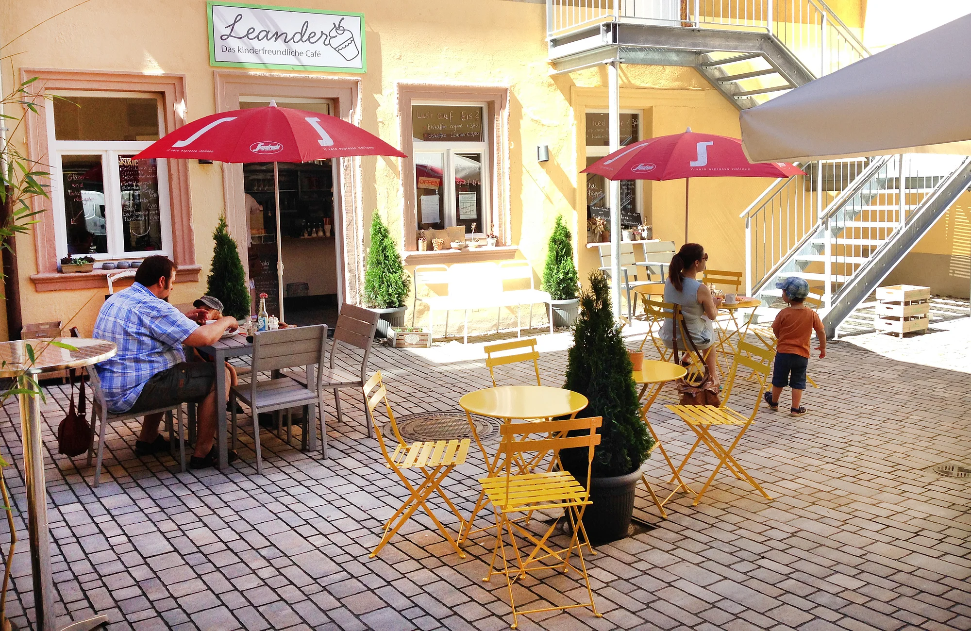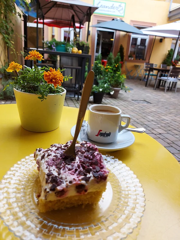 Versteckt gelegen im italienisch anmutenden Innenhof lässt es sich im Café Leander herrlich schnell dem Trubel der Fußgängerzone entfliehen.