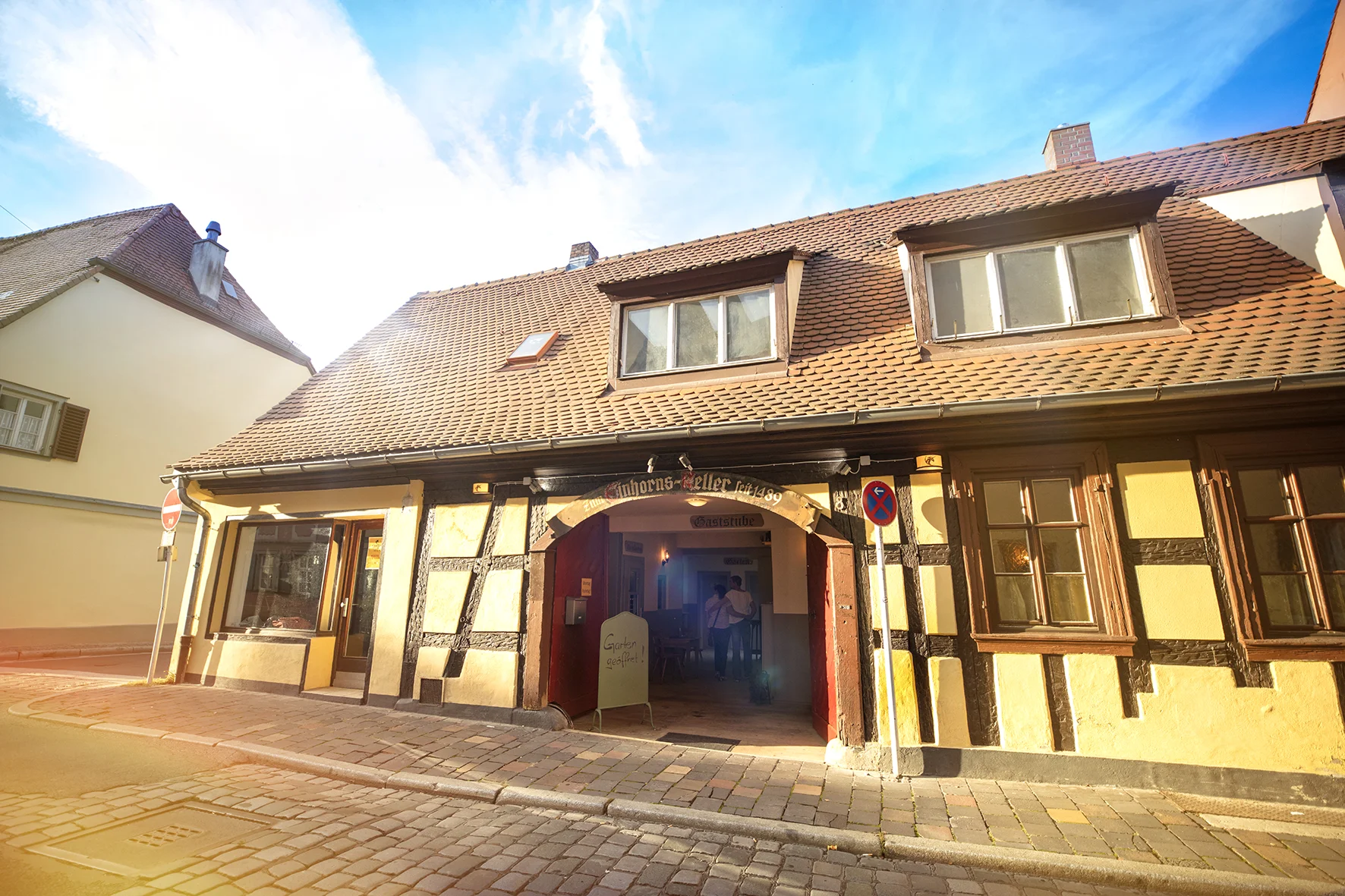 „Einhornskeller“, ein wieder zum Leben erwecktes, traditionsreiches Gasthaus mit dem ältesten Bierkeller Bambergs. Auf den Gast warten fränkische Spezialitäten und wechselnde Tagesgerichte in modernem Wirtshaus-Ambiente.