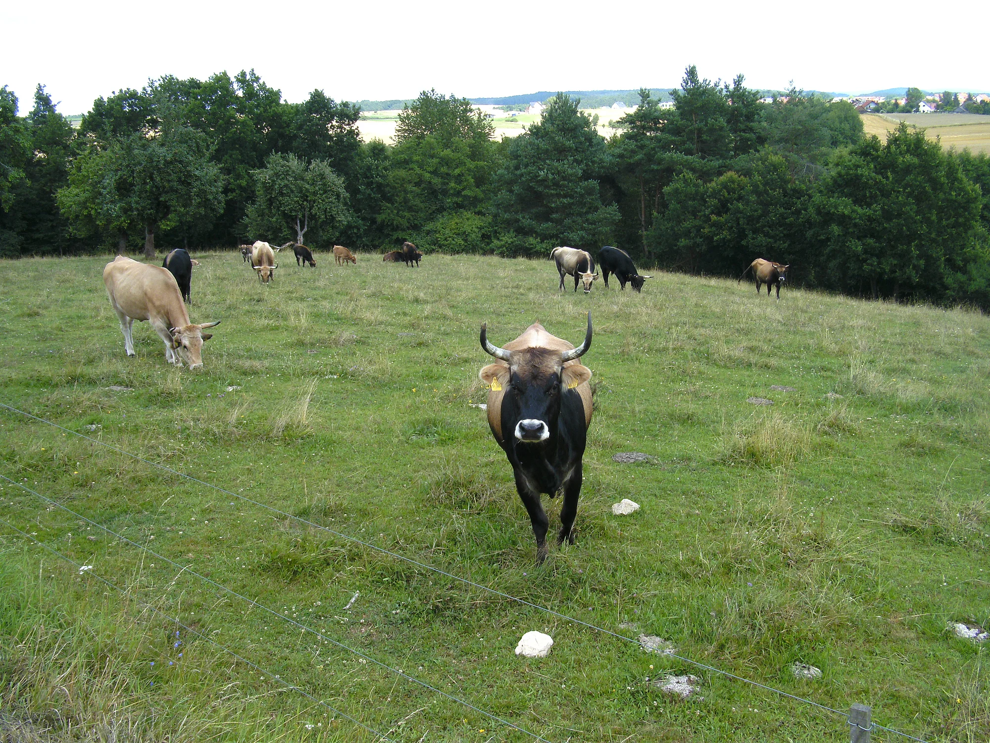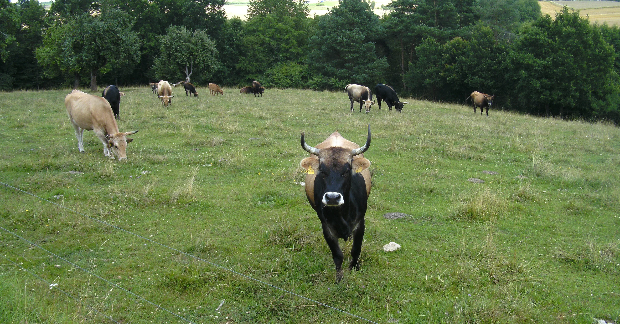 Heckrinder - eine Rückzüchtung des ehemals hier beheimateten Auerrindes sowie die Wasserbüffel, helfen die offene Aue zu erhalten und damit ein wertvolles Stück Kulturlandschaft zu schützen.