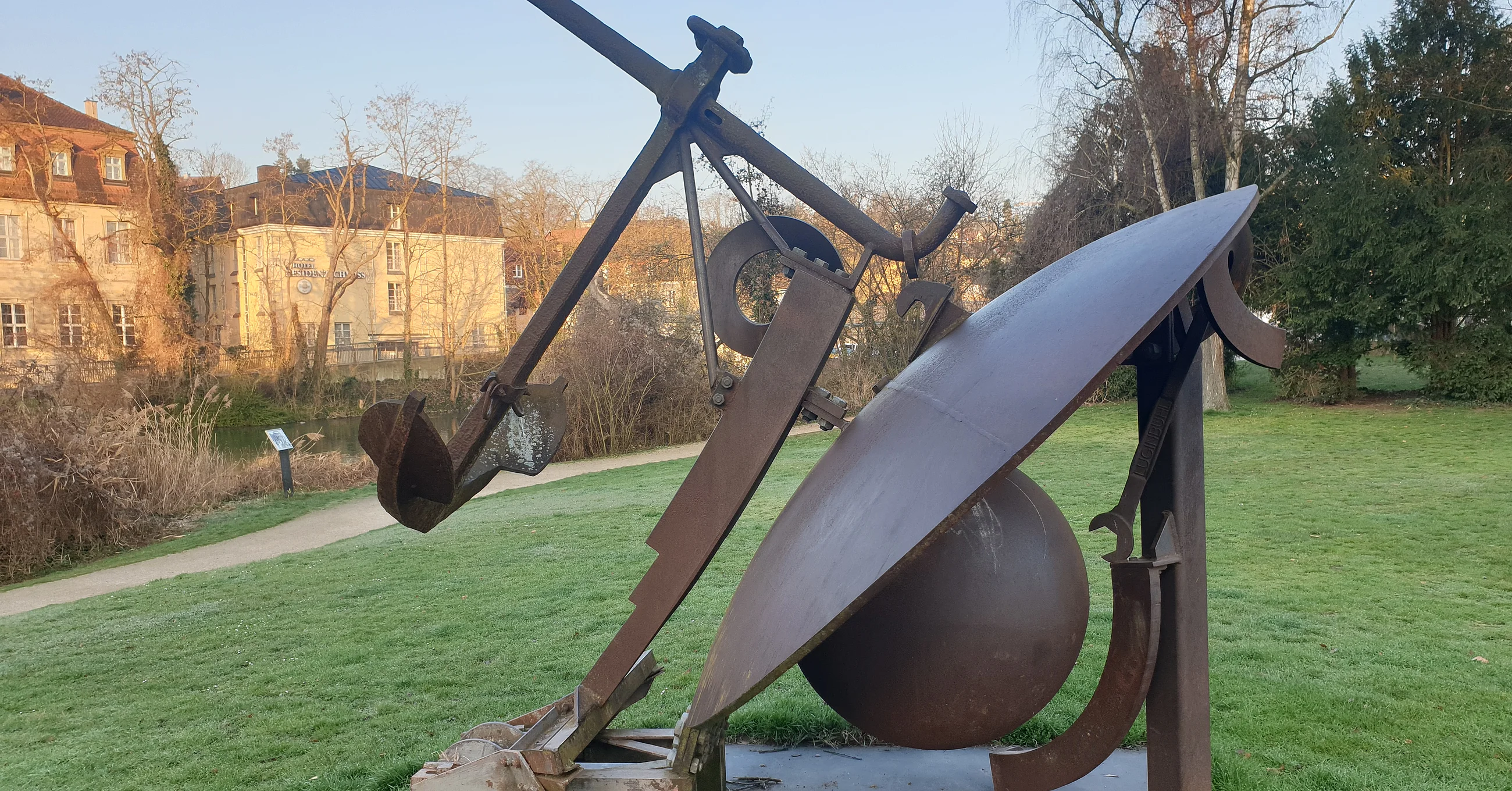 Am Schiffbauplatz in Bamberg steht die „Ankerfigur“ des Schweizer Bildhauers Bernhard Luginbühl. Die Skulptur befindet sich in direkter Sicht zum Kloster St. Michael und dem alten Krankenhaus. Seit den 1960er Jahren war Luginbühl für seine massiven Eisenplastiken bekannt. Seine Werke entstehen aus verschrotteten Kugeln, Schienen, Schrauben und anderen metallenen Industrie- und Handwerksmaterialien, die er zu neuen Kreationen zusammenfügte. Auch die Bamberger Ankerfigur basiert auf diesem Prinzip.