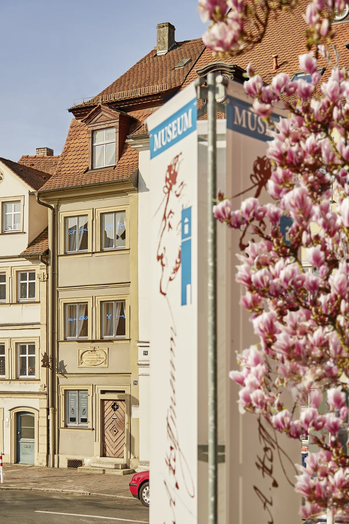 Das schmalbrüstige E.T.A.-Hoffmann-Haus liegt gegenüber dem später nach Hoffmann benannten Theater und war die zweite Wohnung in Bamberg, in der der romantische Literat, Komponist und Zeichner von 1809 bis 1813 mit seiner Frau Mischa lebte. Die Wohnung ist als Gedenkstätte gestaltet. Das Museum präsentiert das Universalgenie als Mehrfachkünstler und setzt Hoffmanns Bamberger Jahre in Bezug zu seinem Werk. Der wunderbare Zaubergarten ist nach dem Archivarius Lindhorst aus dem 'Goldenen Topf' gestaltet und im Sommer Bambergs Geheimtipp als Ruheoase. Die museale Präsentation im Haus bewahrt das spezifisch realistisch-phantastische Flair und vermittelt sinnliche Eindrücke visueller und akustischer Art. Für Hoffmann-Freunde ein faszinierender kultureller Anziehungspunkt. Regelmäßige Lesungen und Sonderausstellungen beleben das Haus zusätzlich. Ganzjährig werden Führungen und Vermittlungsformate angeboten.