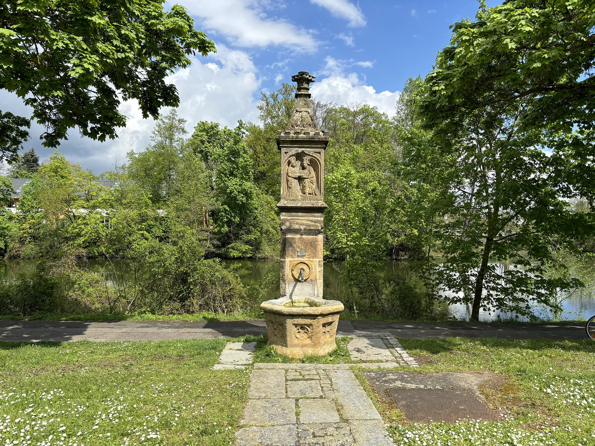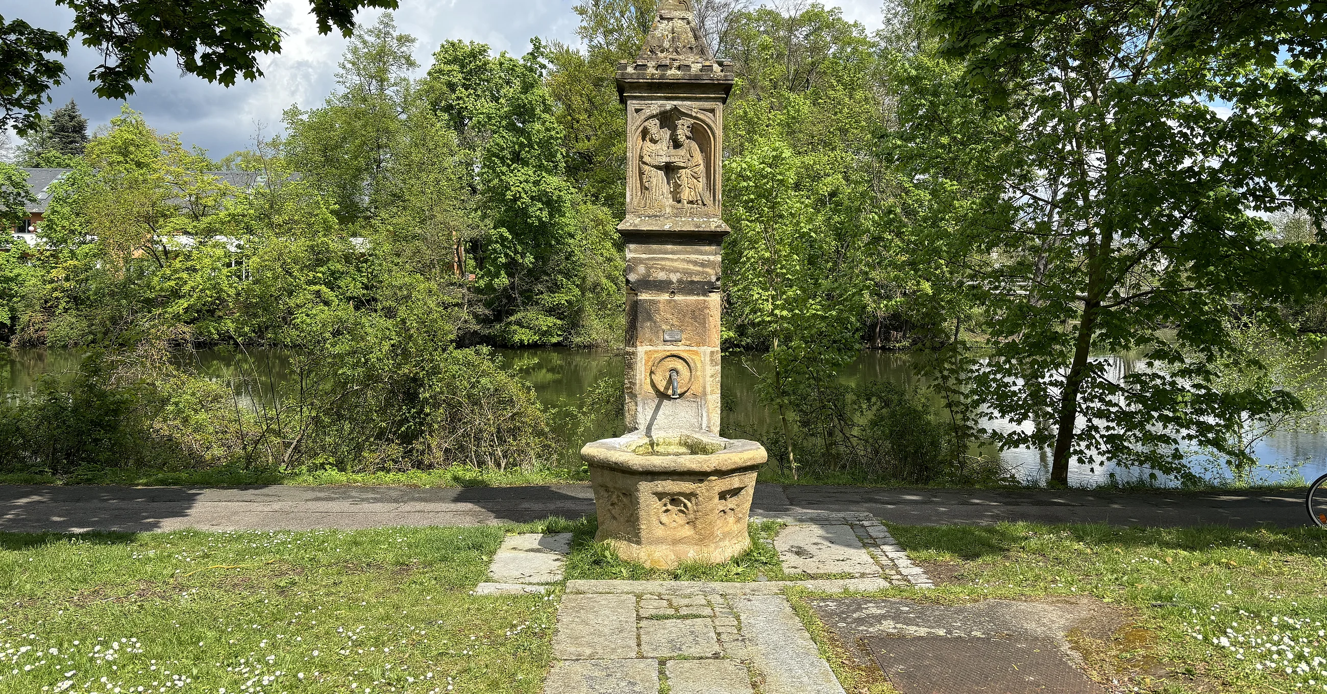 Dieser Brunnen liegt direkt am Radweg nach Gaustadt zwischen Friedensbrücke und dem Eingang zur Erba-Insel.