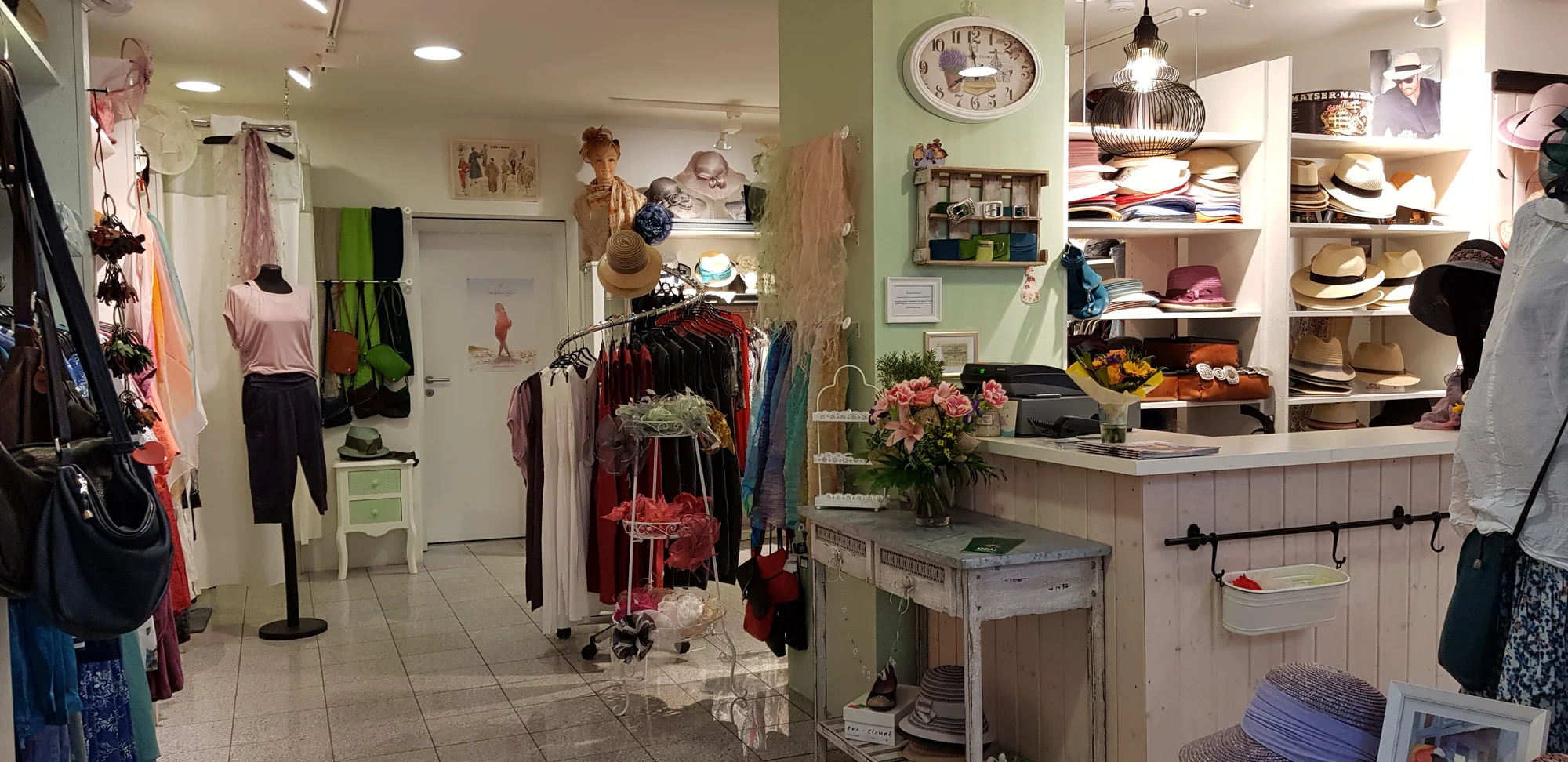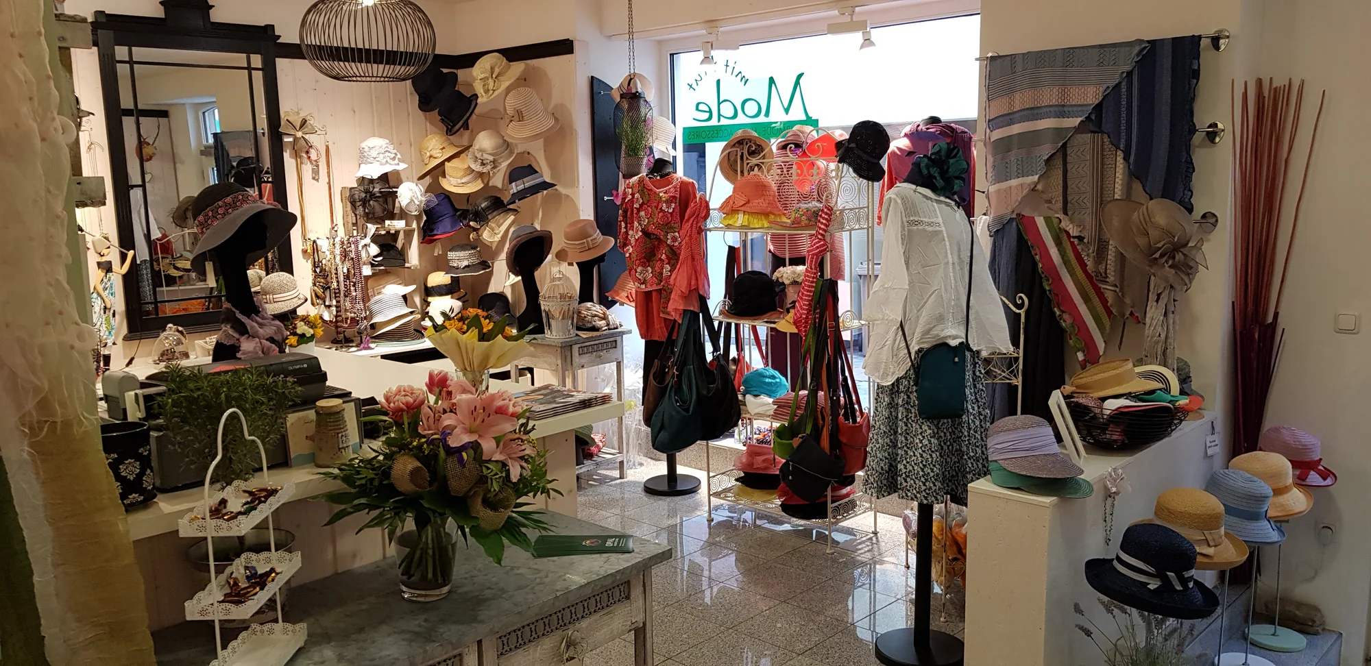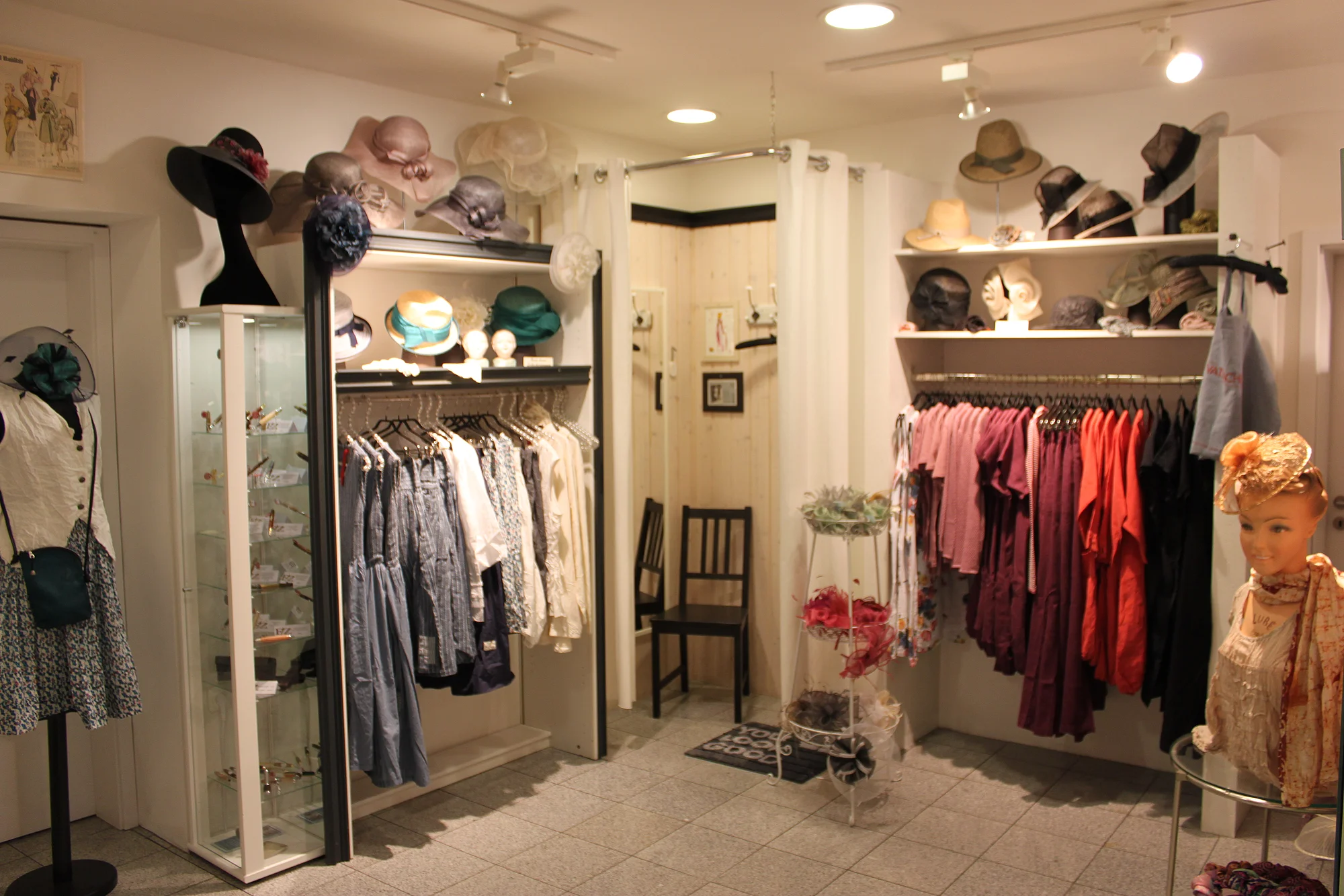 Sie wird abgerundet durch eine Vielfalt an besonderen Kopfbedeckungen für Damen und Herren sowie außergewöhnlichen Accessoires.