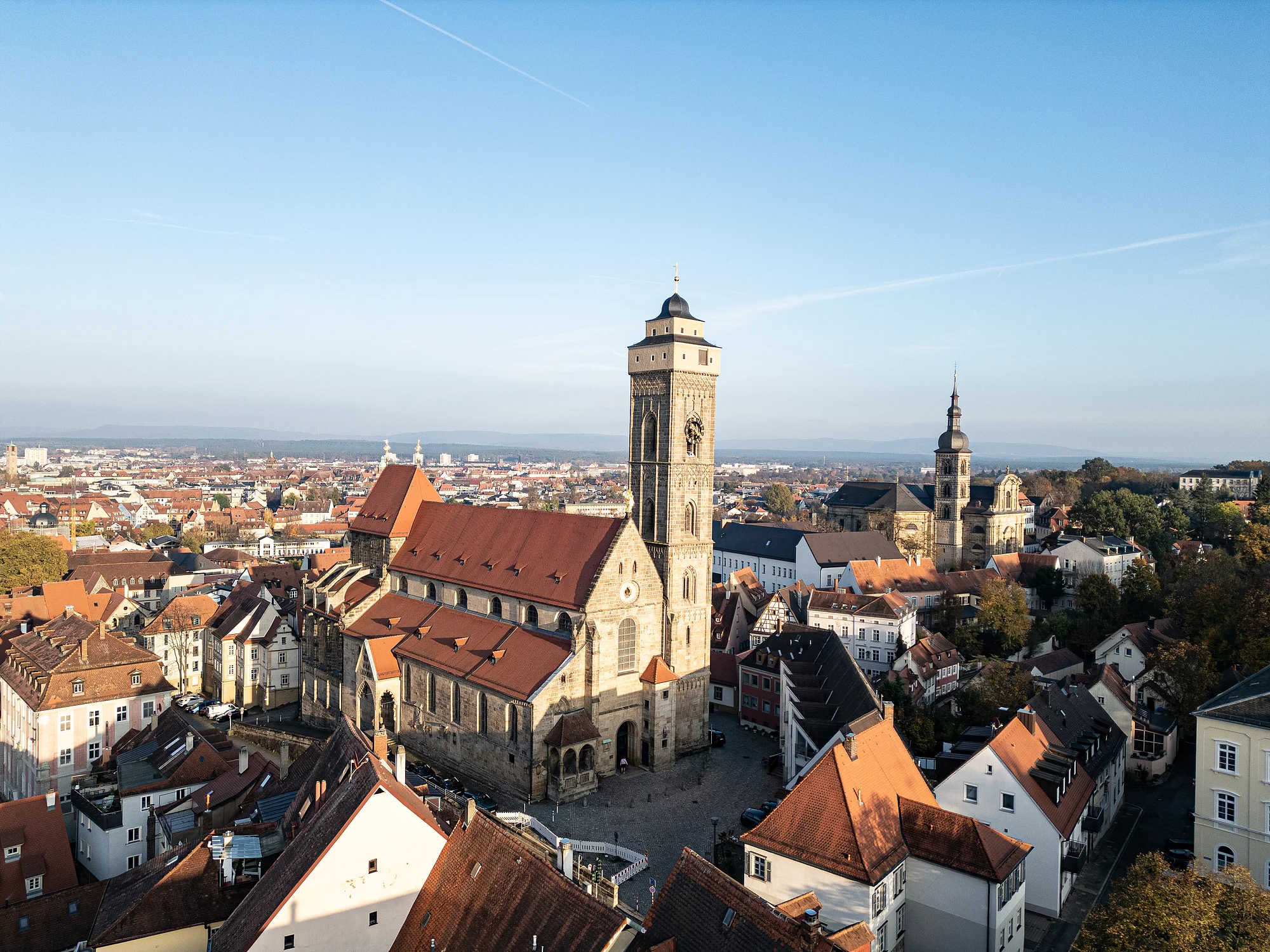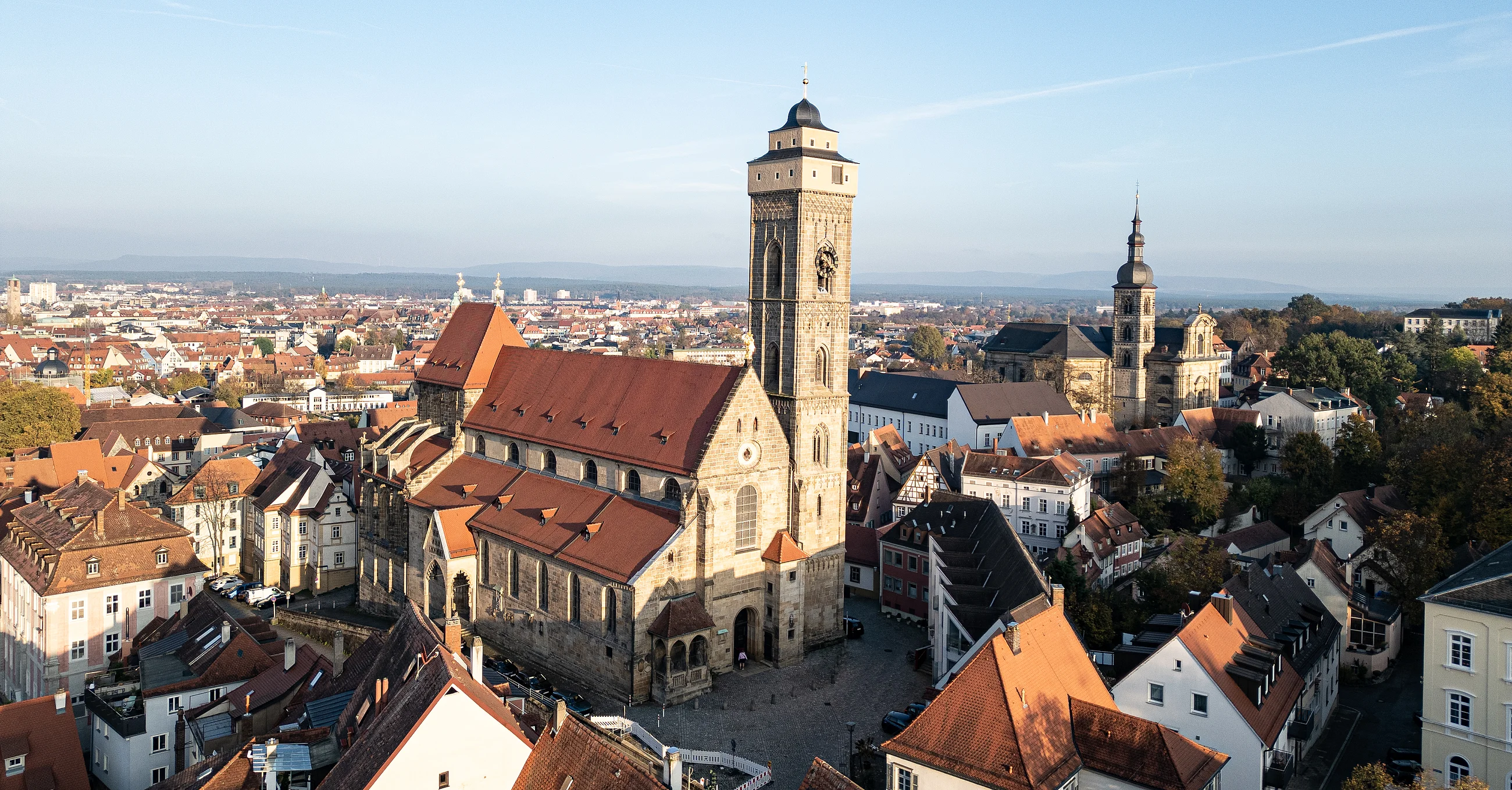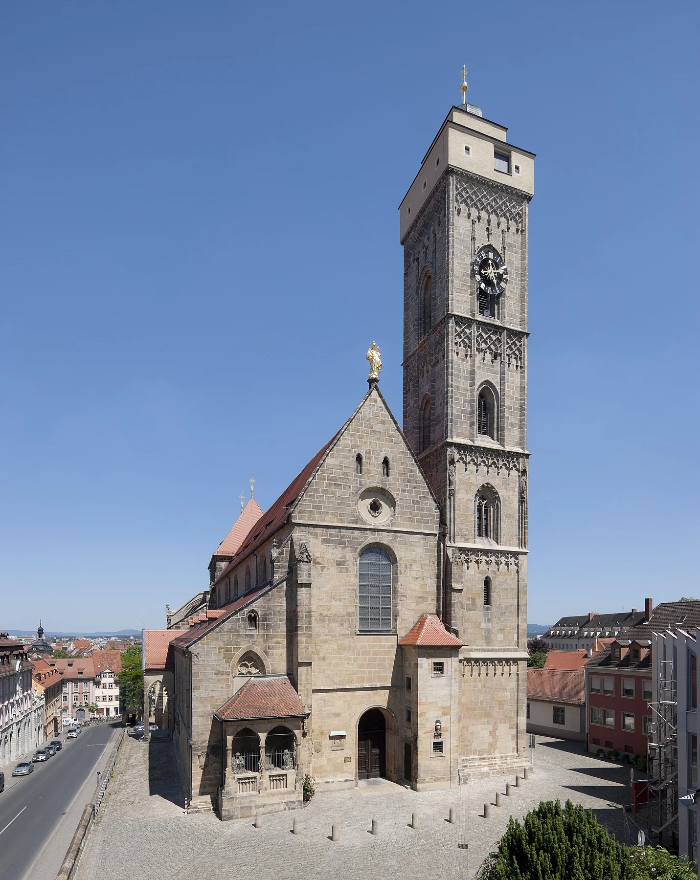 Die Pfarrkirche "Zu Unserer Lieben Frau" ist die einzige rein gotische Kirche Bambergs. Das schlichte Langhaus ist 50 Jahre später als der 1375 grundgelegte spätgotische Chor und der von Strebebögen gestützte Hochchor. Herausragend ist das Eheportal mit seinen gotischen Plastiken. Der dreischiffige Innenraum ist barock ausgestattet. Besonders wertvoll ist u. a. das Gemälde "Die Himmelfahrt Marias" von Tintoretto.