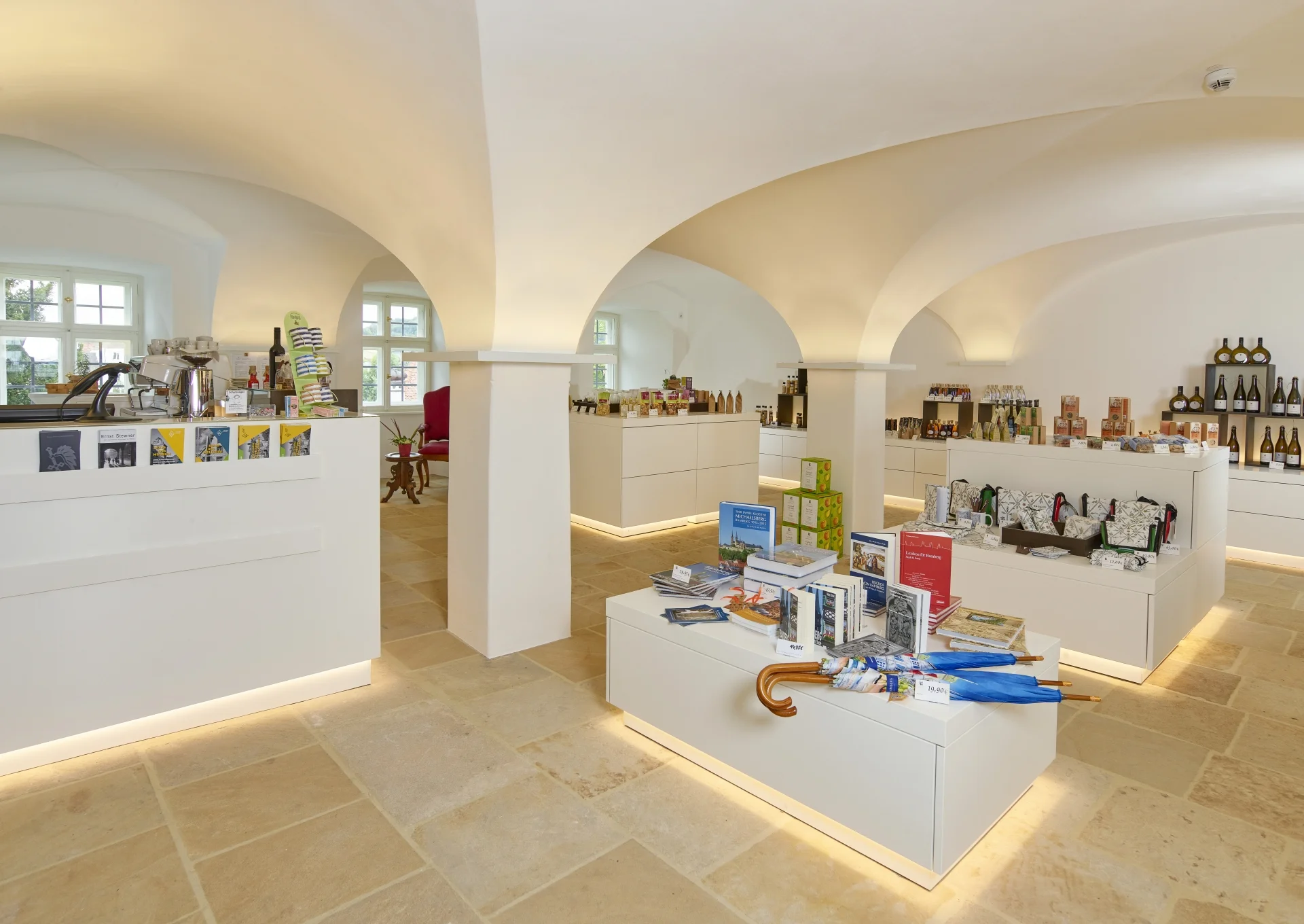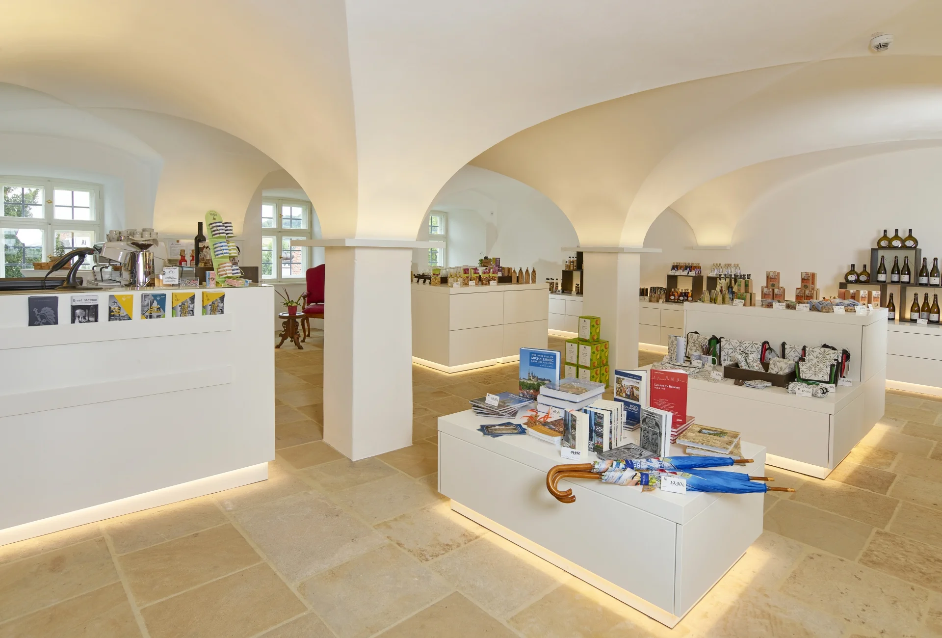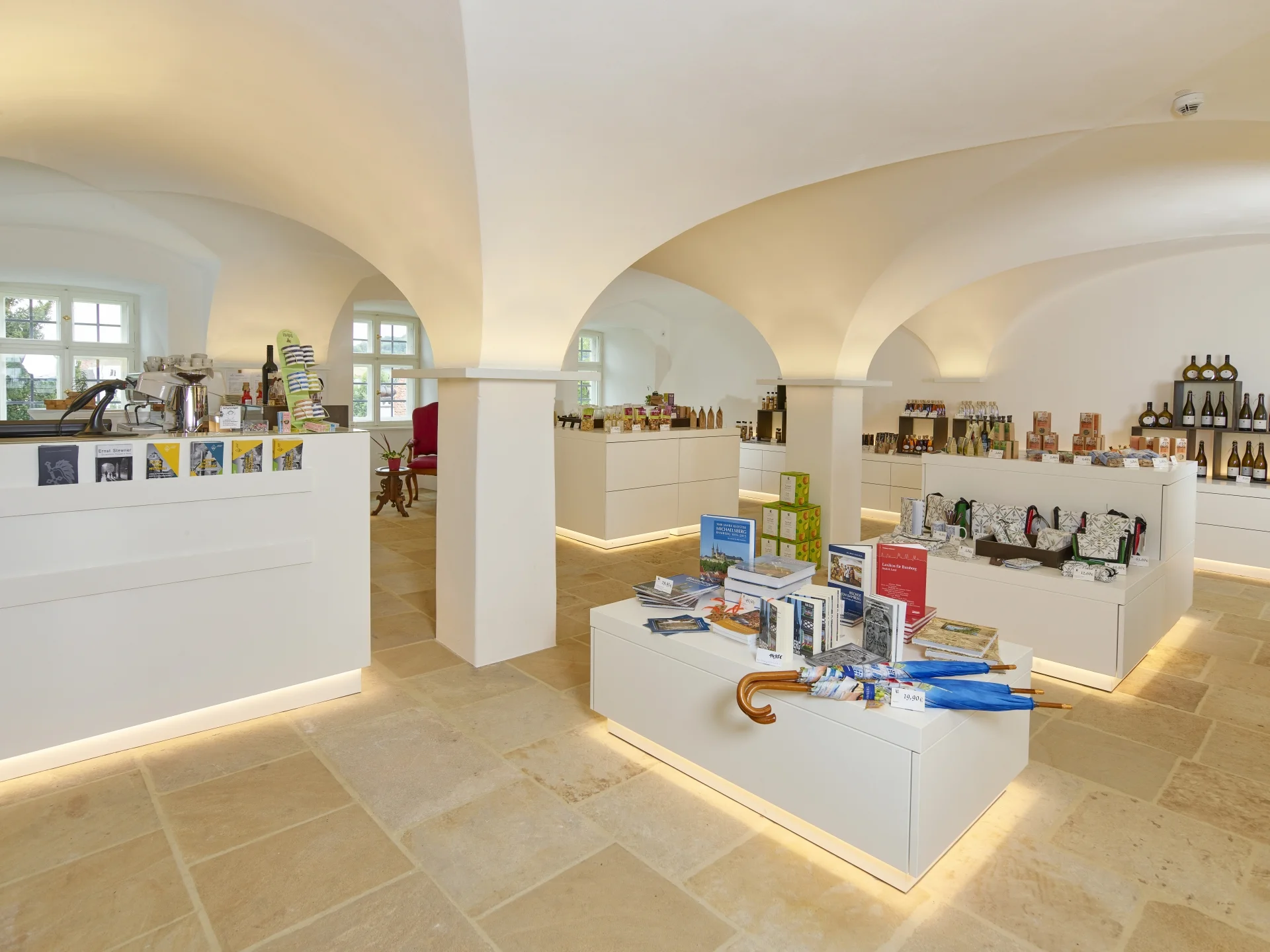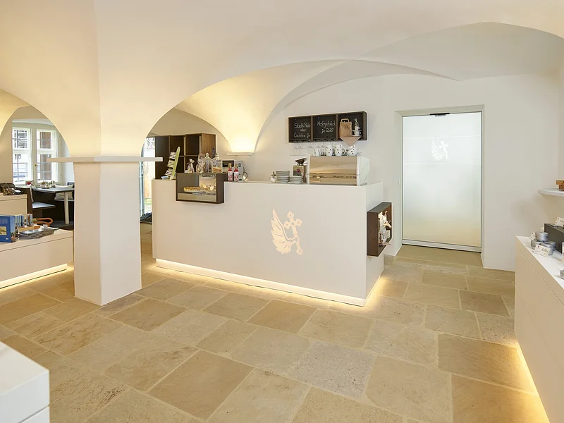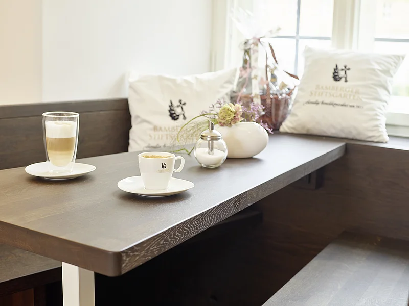 Nach der Renovierung lädt der Bamberger Stiftsladen mit kleinem Cafe zum Verweilen ein. Cafe-Variationen, Fairtrade gehandelter Kaffee aus fränkischer Kaffeerösterei, selbstgebackenen Kuchen, einen Silvaner oder Apfelsecco aus dem Weinberg unterhalb von St. Michael können Sie hier in neuem Ambiente mit Gartenterrasse genießen.