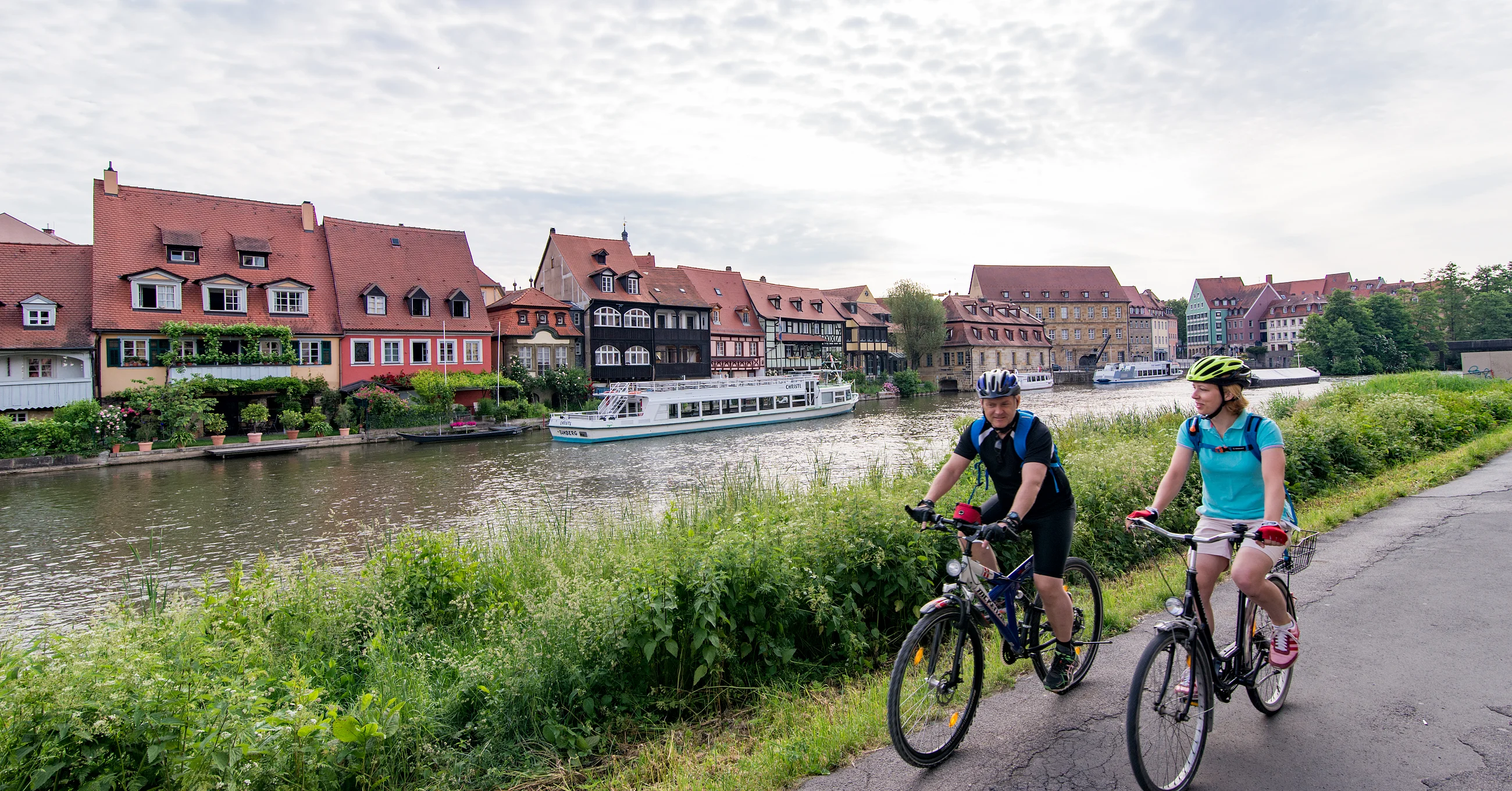 Entdecke die schönsten Seiten der Region bequem auf zwei Rädern: Ob durch die Altstadt, entlang der Regnitz oder hinaus ins Grüne – Radfahren in Bamberg verbindet Kultur, Natur und Bewegung.