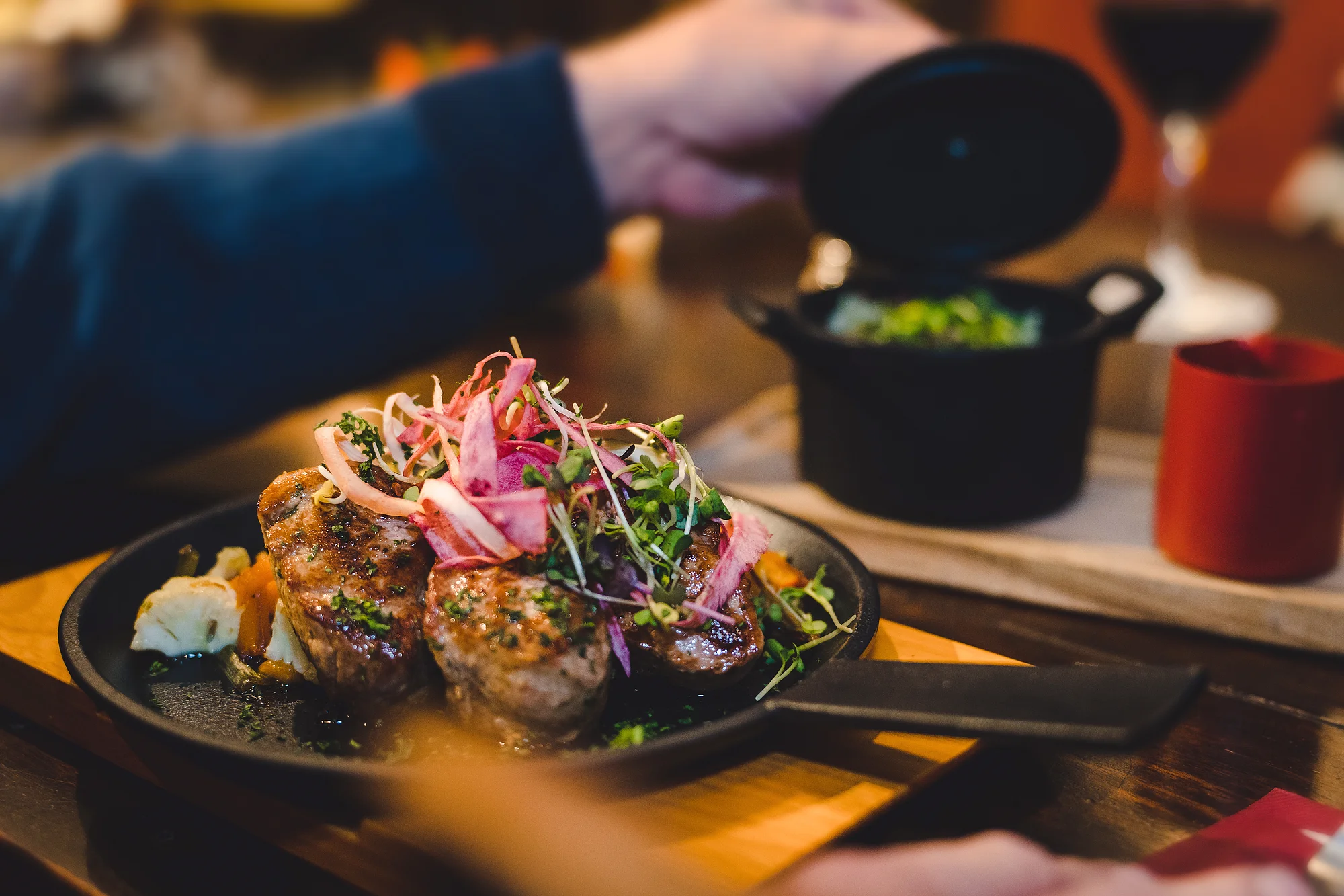 Genießen Sie internationale sowie typisch fränkische Spezialitäten mit saisonalen Aktionen in gemütlich-rustikalem Ambiente bei einem frisch gezapften Bier, fränkischen Wein oder alkoholfreien Cocktail.