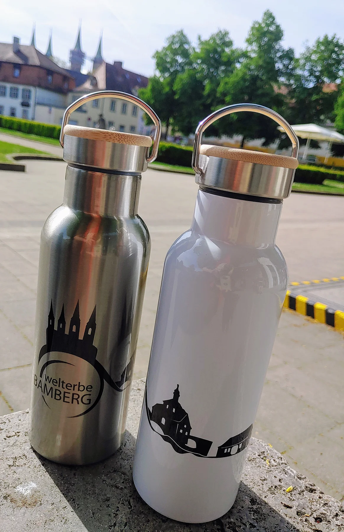 Edelstahl Thermoflasche mit Bambusdeckel 500ml
