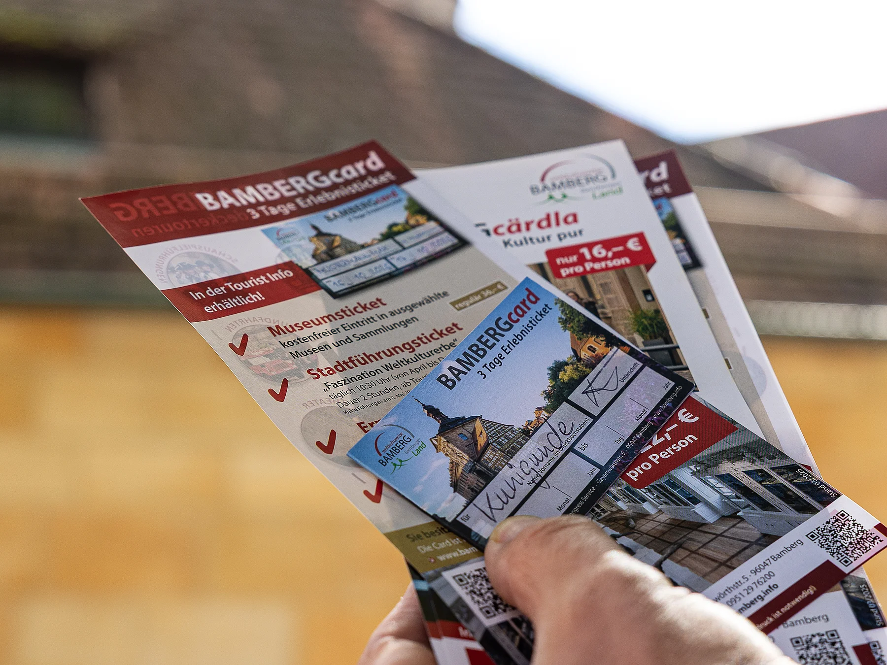Natürlich steht auch die klassische tägliche Stadtführung mit den wichtigsten Sehenswürdigkeiten auf dem Programm. Dazu kommen Ausflüge und Reisebegleitungen ins schöne und sehenswerte Bamberger Land und die umliegenden Naturparke. Stadtrundfahrten zu Lande und zu Wasser sind eine weitere Alternative zum Rundgang zu Fuß.