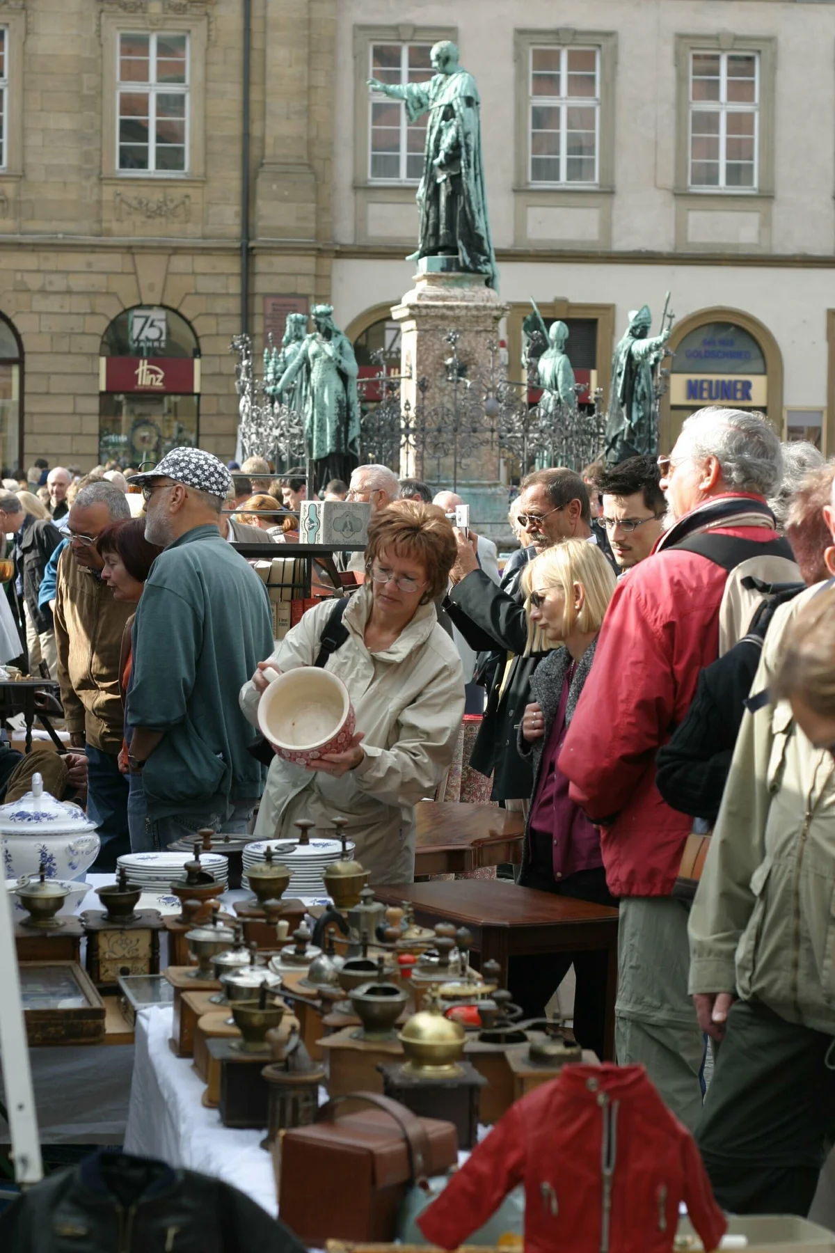 Das Kaffeeservice von Uroma, die verstaubten Bücher vom Dachboden oder der wertvolle Bauernschrank. Auf dem Antik- und Trödelmarkt lässt sich so manches versilbern, für das man in den eigenen vier Wänden keinen Platz mehr finden kann oder will. Ist dann die Plattform so faszinierend wie der Antik- und Trödelmarkt in Bamberg, stehen die Chancen gut - ob man kaufen oder verkaufen will. Die ganze Innenstadt scheint dann nur noch aus Antiquitäten und Trödel zu bestehen - abertausende Gegenstände warten darauf, den Besitzer zu wechseln. Mit über 20.000 Besuchern und knapp 350 Händlern aus ganz Europa ist der Antikmarkt somit einer der größten in Europa.