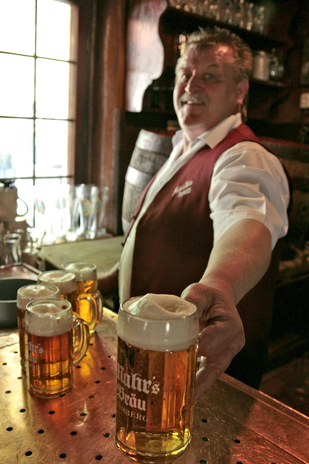 Gerade im 19. Jahrhundert hatte Bamberg mit seinen 65 Brauereien eine in Franken einmalige Stellung inne und selbst heute wird hier noch in zahlreichen zumeist mittelständischen Brauereien Bier gebraut. Diese einmalige Tradition erlebte früher - am Tag des Bieres (23. April) - ihren Höhepunkt.