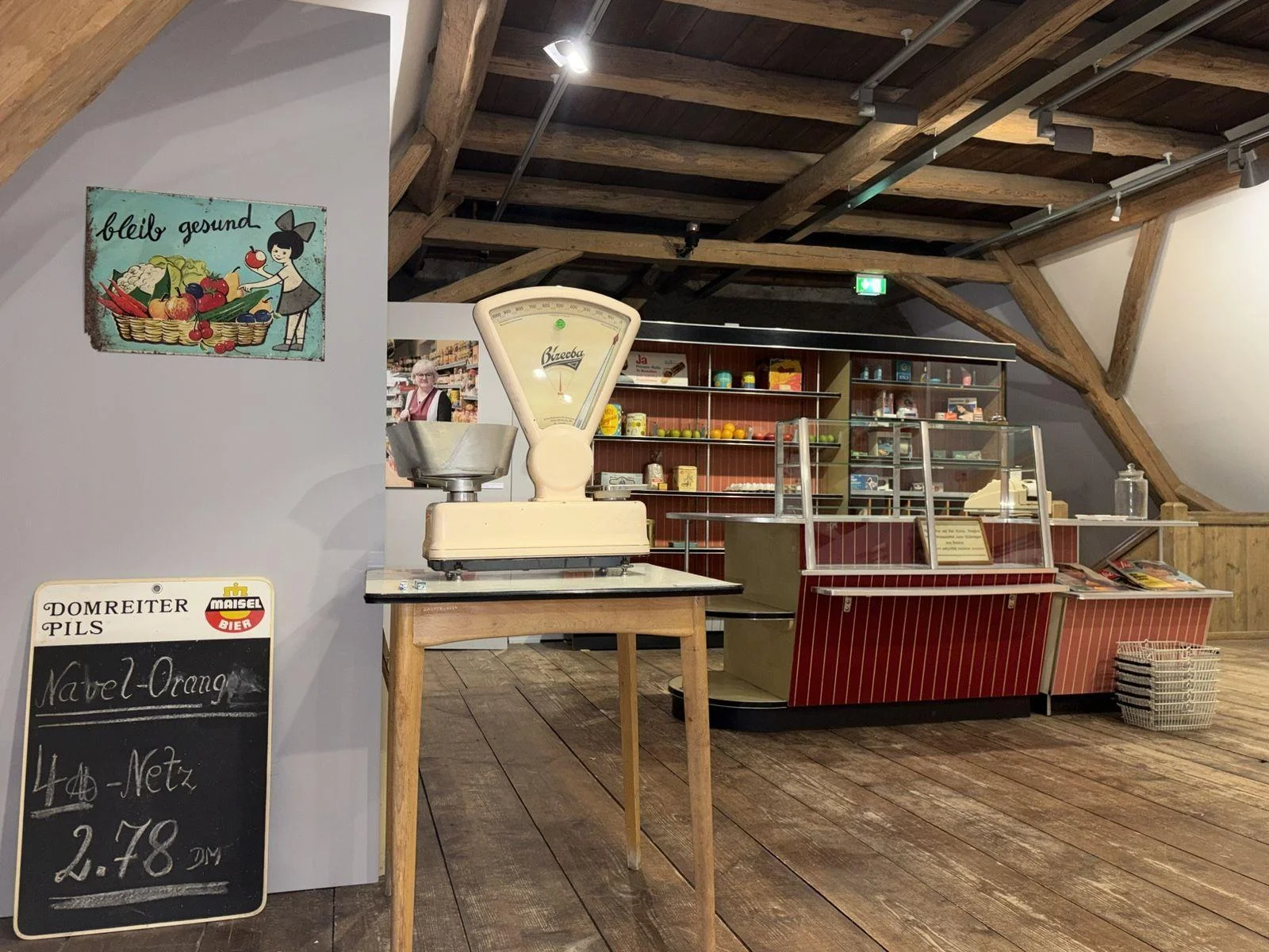 Ein besonderes Highlight der Ausstellung ist ein original eingerichteter Tante-Emma-Laden, der die Atmosphäre vergangener Zeiten anschaulich erlebbar macht. Darüber hinaus wird im Themenbereich Wirtshäuser auch die traditionelle Spielekultur beleuchtet, die einst untrennbar mit dem geselligen Beisammensein verbunden war.