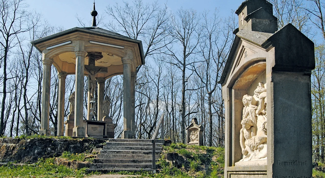 Tief im Wald stößt man dann auf eine geheimnisumwitterte Ruine: die Überreste der spätgotischen Helenenkapelle. Sie wurde „Kapelle der Elenden Heiligen“ genannt und war ursprünglich der heiligen Felicitas geweiht. Das Wasser aus ihrem Brunnen, so ist es überliefert, sollte Krankheiten heilen. Außerdem wurde lange geglaubt, dass es an diesem Ort spuken würde.
